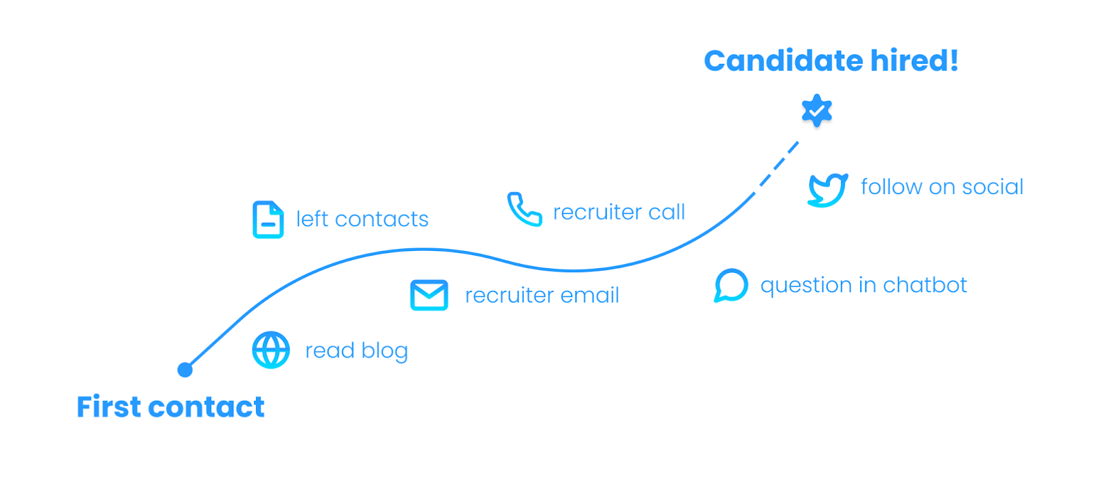 To prevent that candidates forget about you as quickly as they got introduced to you, you need several touchpoints to get them more engaged with your employer brand and open job. You need to expand the candidate experience and stay top of mind over a longer period of time to pull candidates in.