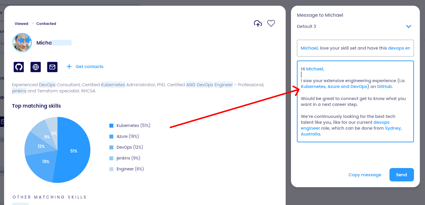 Your message should go from ‘Hi there’ to ‘Hi Jonathan’ and from ‘I saw your skills in Java and Python’.