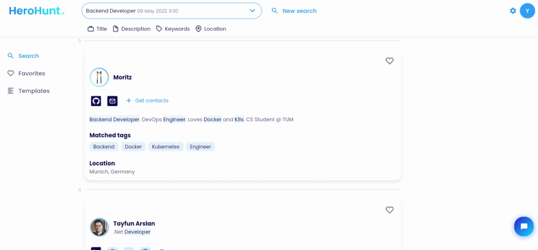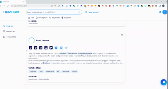 If you want to deep dive into the background and online presence of the candidate you can follow their social links which HeroHunt.ai finds for you and includes in the profiles. This way you can really get a good sense of who the candidates are and what they have been contributing so far to the tech community and companies they worked for.