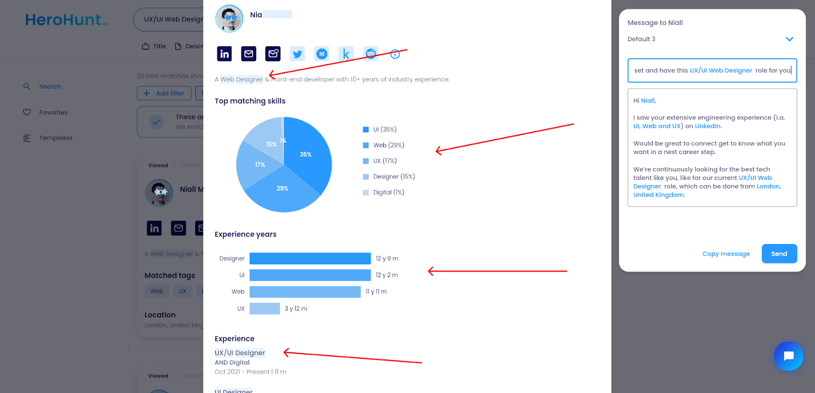 What’s left is to send the auto generated message to the candidate straight from HeroHunt.ai or include the candidate in a message sequence to send multiple messages over time.