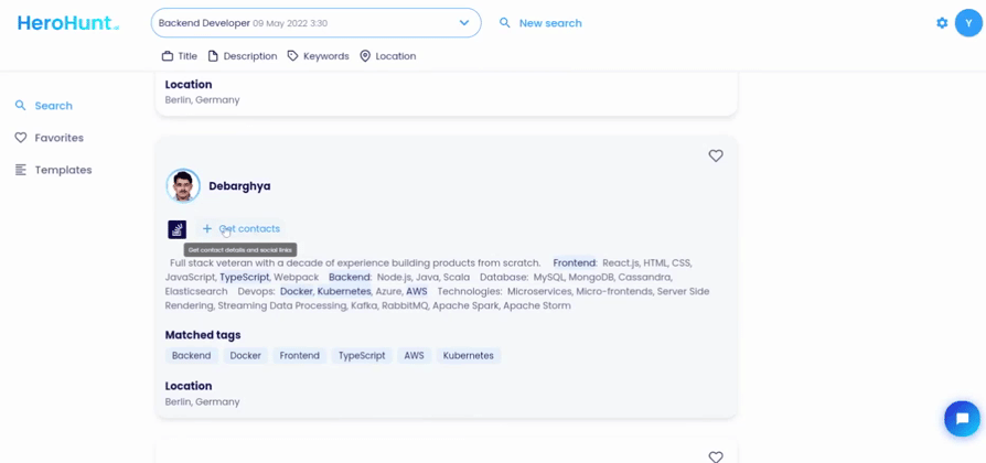 When HeroHunt.ai created your search you turn this search into a list of qualified candidates. You don’t have to search yourself,, HeroHunt.ai searches platforms like LinkedIn, GitHub and Stack Overflow real-time and can find every single profile on their.