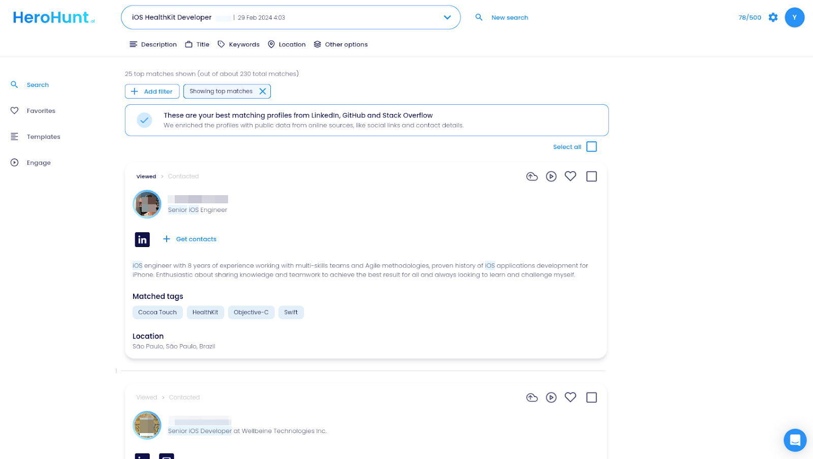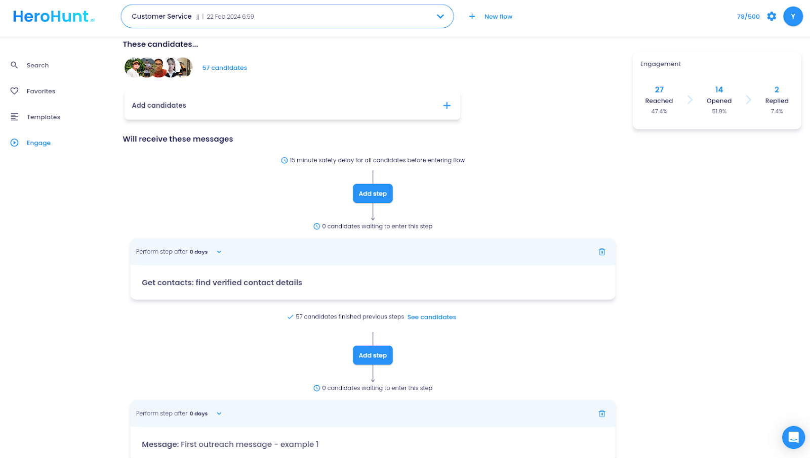 Alternatively, for a more automated approach, use HeroHunt.ai's Engage feature to automatically send personalized messages to candidates and then synchronize their profiles with Greenhouse.