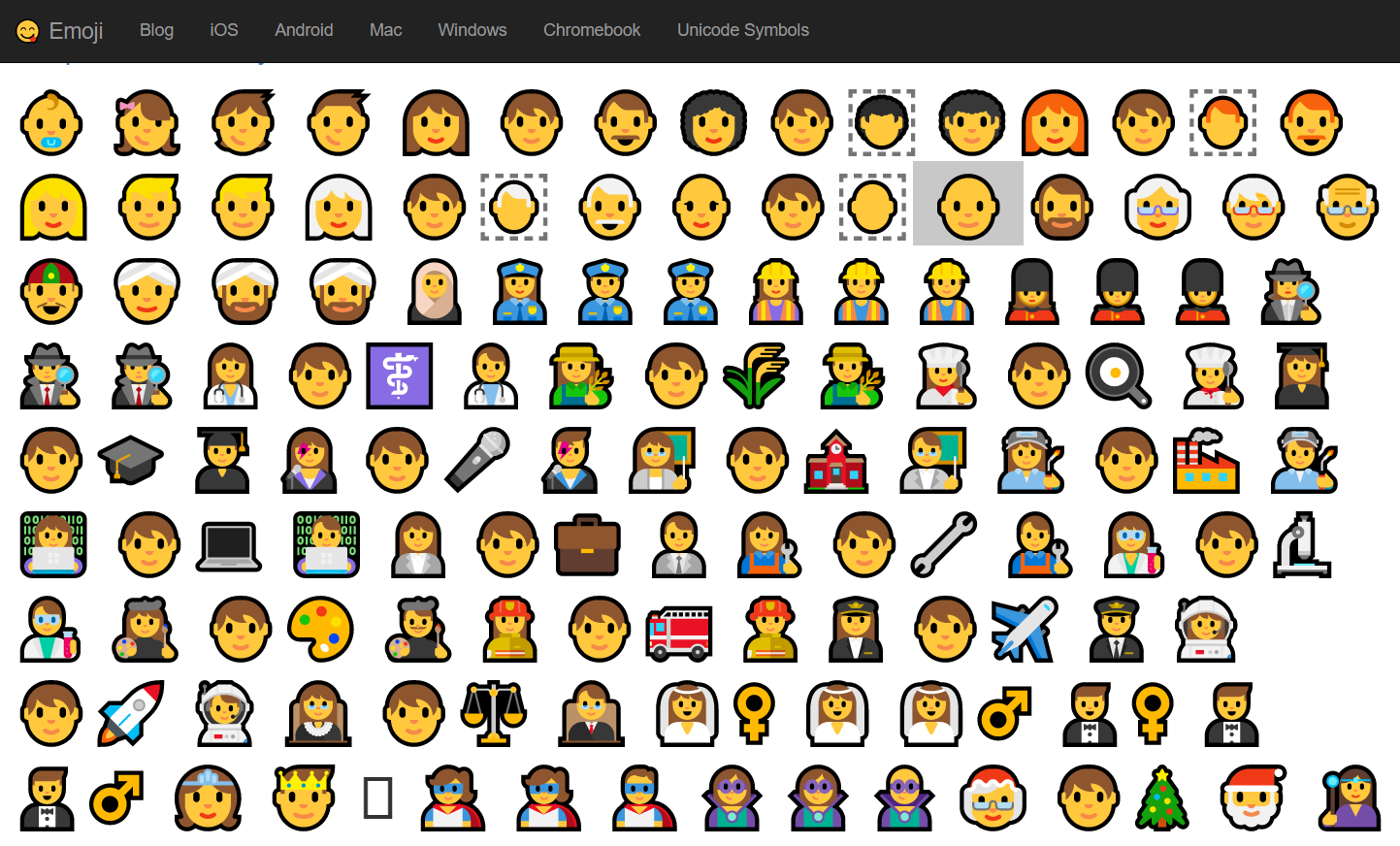 - For icons displaying people, take into account that different skin tones can be used which you can find on Get Emoji