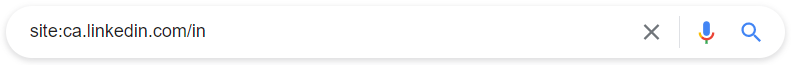 For Canada the search string looks like this: site:ca.linkedin.com/in