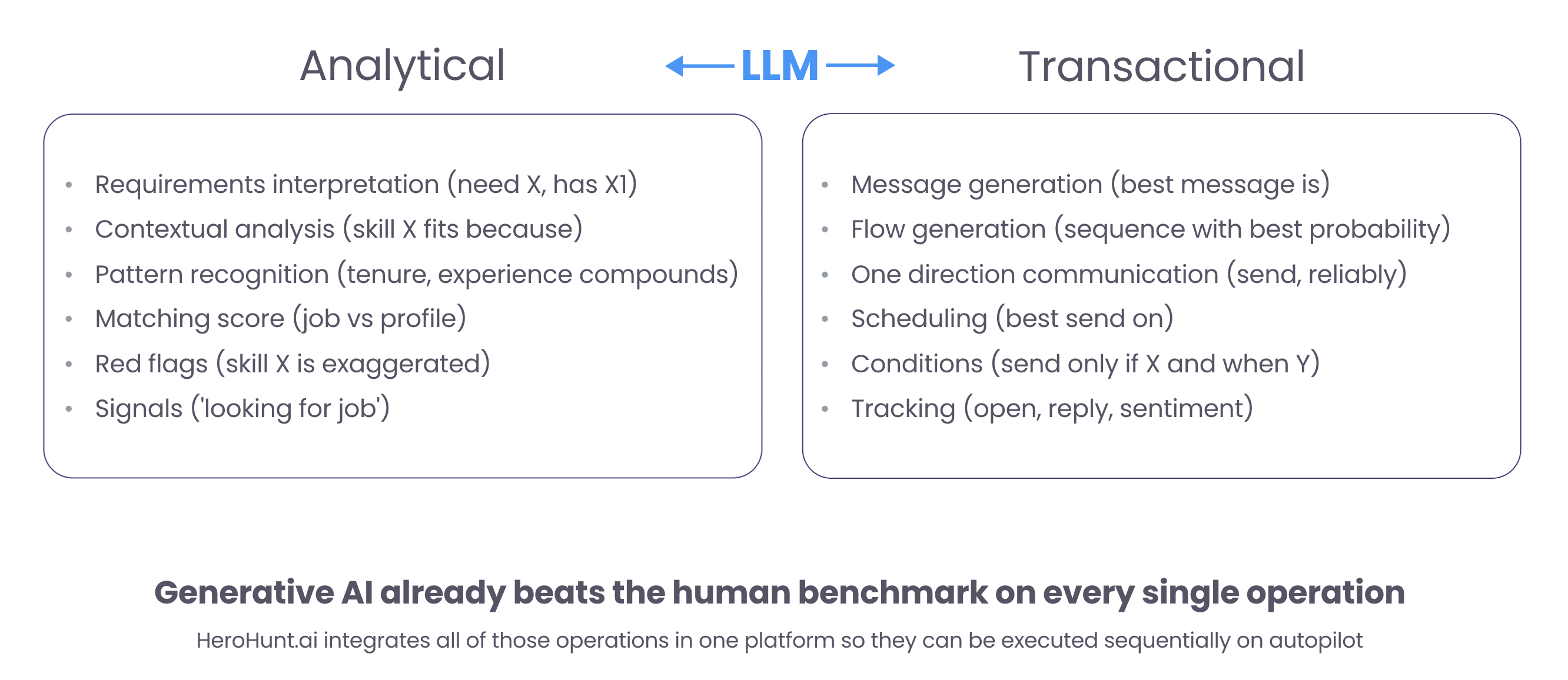 The implementation of LLMs in platforms like HeroHunt.ai exemplifies this trend, offering complete automation of recruitment processes and sourcing candidates without human intervention except for review.