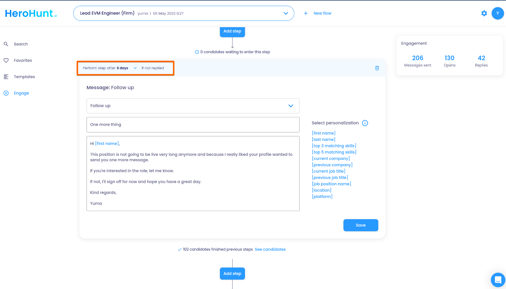 - Use a tool that has ‘if not replied’ function so you can make sure that your follow up messages are not sent to candidates when they did already reply to your earlier message(s)