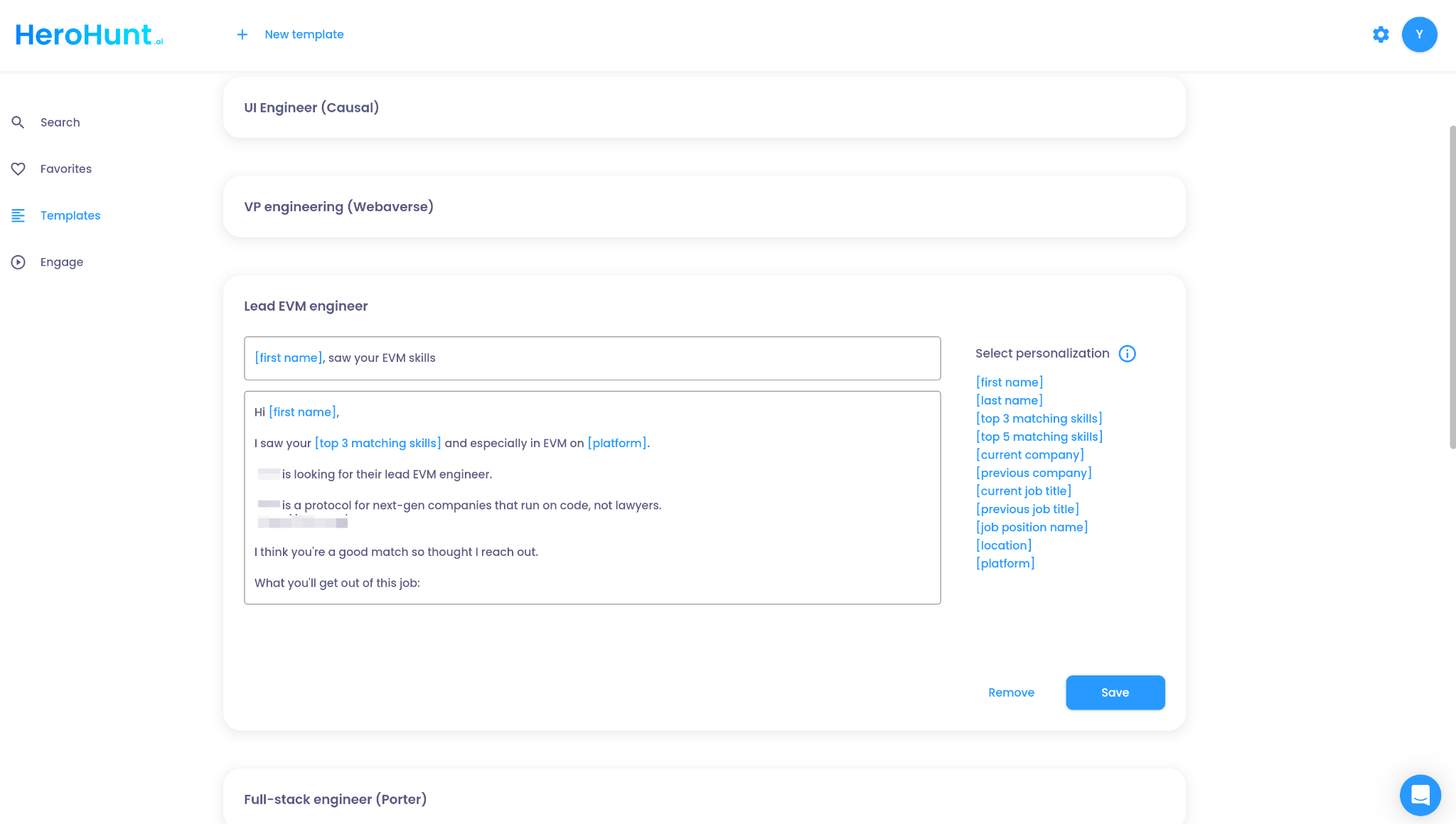 - Use automated personalizations like [first name], [current job title] and [top 3 matching skills] to relate to the candidate’s actual skills and background.