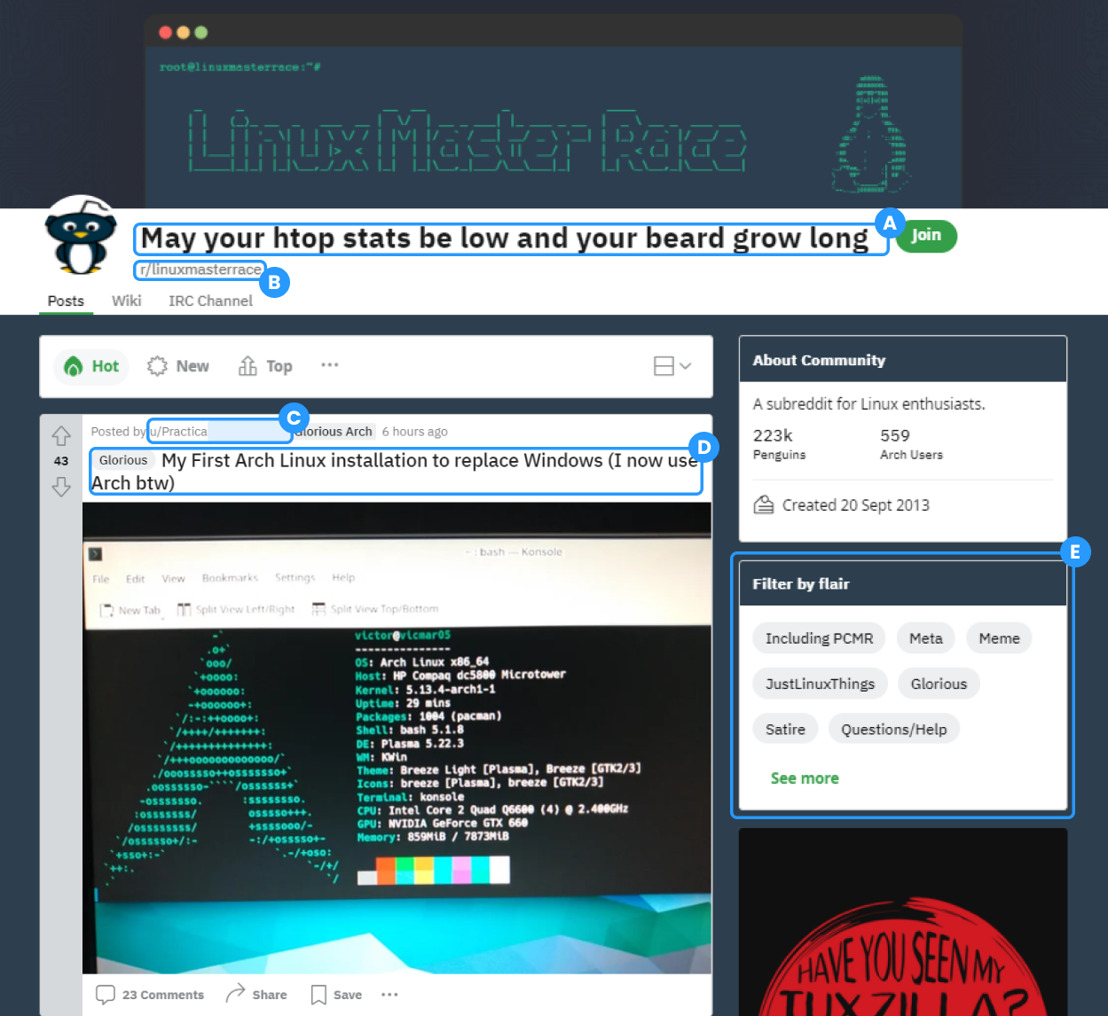 B: Name and link of the subreddit