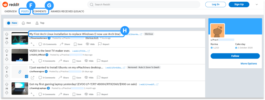 G: Comments of the individual Redditor