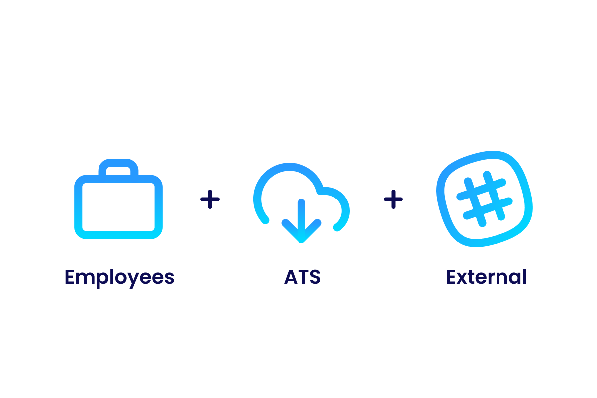 External sourcing is the biggest source of hires since the talent pool is a lot larger than the current employee base or the ATS.
