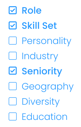 We include role, skill set and seniority level as job criteria.
