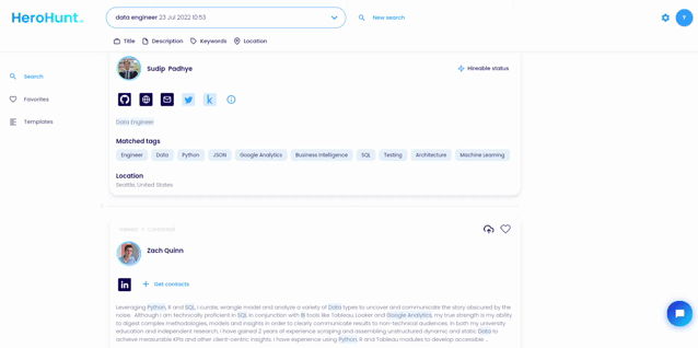 The talent search engine finds contact details automatically and automatically generates a hyper personalized message that you can send in one click.